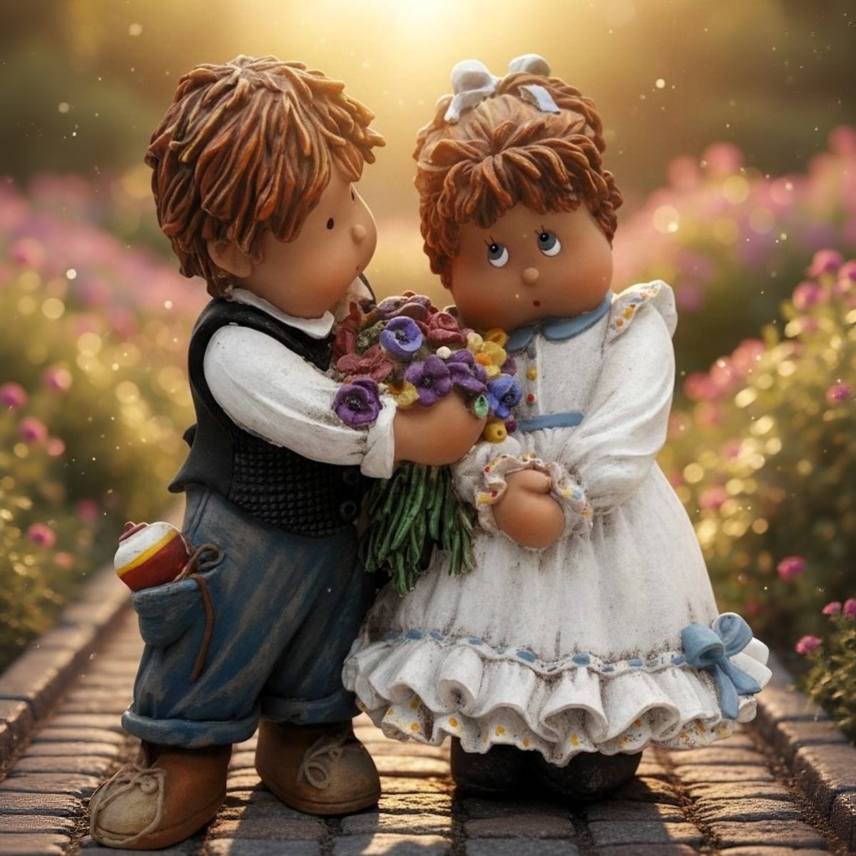 Una tierna Cuqui era obsequiada con mucho cariño con un precioso ramo de flores por su enamorado compañero.